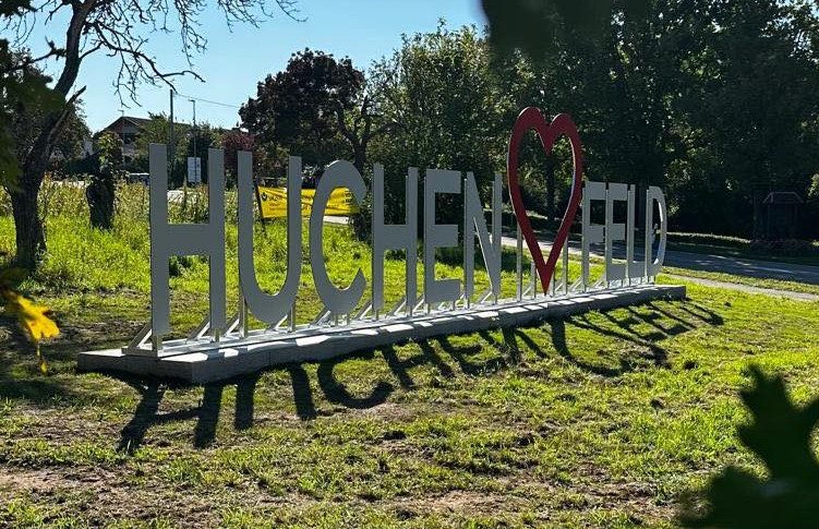 Das neue Stadtteil-Logo am Ortseingang von Huchenfeld wurde von uns mit € 1.000 unterstützt. Wir haben das Herz gesponsert.